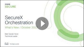 This video gives a summary of new features and content released for SecureX Orchestration this year. Topics include the updated My Workflows section, the new My Exchange, SecureX Tokens, Microsoft OAuth2 Support, and new workflows.