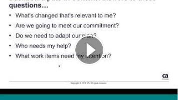 With the combined use of Dashboards and Apps, you can tailor your views to focus only on the data and information that is most important to you and your team. In this session, you will learn how to easily create dashboards for various role personas and Agile ceremonies. If you are not familiar with the new ‘look and feel’ of the App catalog, we will provide a quick tour and show you how to directly access Community apps through catalog verses.