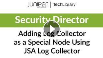 This video shows you how to add Log Collector as a special node in Junos Space Security Director UI, using Juniper Secure Analytics, also known as JSA. Subsequently, you can view log data collected across multiple SRX Series devices in Dashboard, Events and Logs, Reports, and Alerts pages. You can use either JSA3800, JSA5800, JSA7500, or virtual JSA to collect logs in Junos Space Security Director.