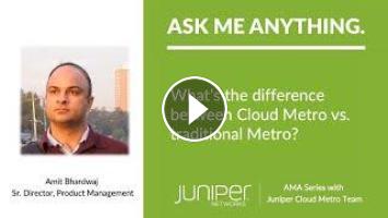 Welcome to the Juniper Cloud Metro AMA series, where we have experts to answer your questions, any questions related to next-gen metro networks. As part of the series, this video specifically answers the question of “What's the difference between Cloud Metro vs. traditional metro?” What other questions do you have? Send us your question by email at metroAMA@juniper.net And join us at our monthly live AMA session.