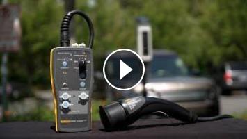 Test different charging states of an AC level 2 charging station with the Fluke FEV100 EVSE test adapter. The adapter simulates control pilot charging states of an electrical vehicle, so you can verify the charging voltage using a digital multimeter or scopemeter.