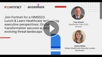 We're LIVE at #HIMSS23 in Chicago! Watch as #Fortinet's Healthcare Field CISO, Troy Ament leads a discussion on securing #DigitalTransformation with #Accenture's Salwa Rafee.